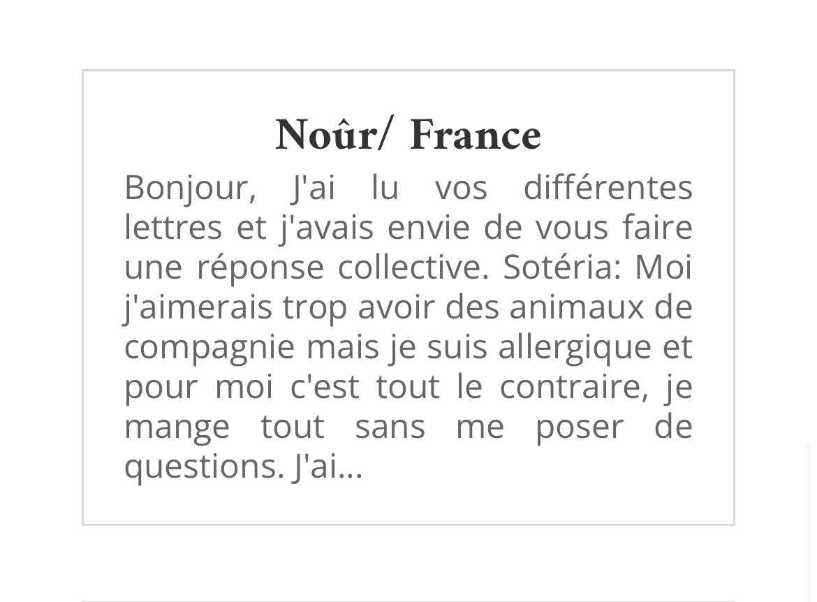 Au fil de l’année scolaire, les jeunes participant.e.s écrivent aux élèves de l’autre classe ou l’autre groupe du projet Kwandika. Leurs enseignants les invitent à établir entre eux des liens épistolaires à travers, notamment, un blog pour apprendre à se connaître, se questionner et parler aussi de soi, de son quotidien. Cette correspondance tient également une place importante dans les ateliers d’écriture.
